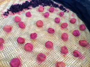 ほぐすときれいな赤紫色になる。